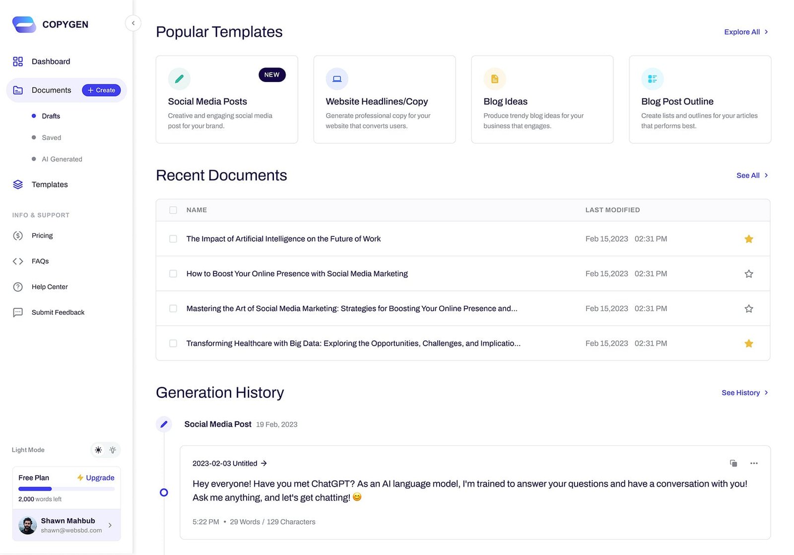Access to AI writer features to help you get a taste of AI writing.